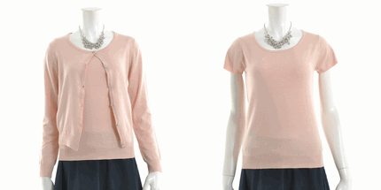「ネックレス付丸首カーディガンX半袖ニット」を