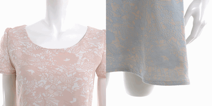 レース風の織り柄で仕上げたルックスが